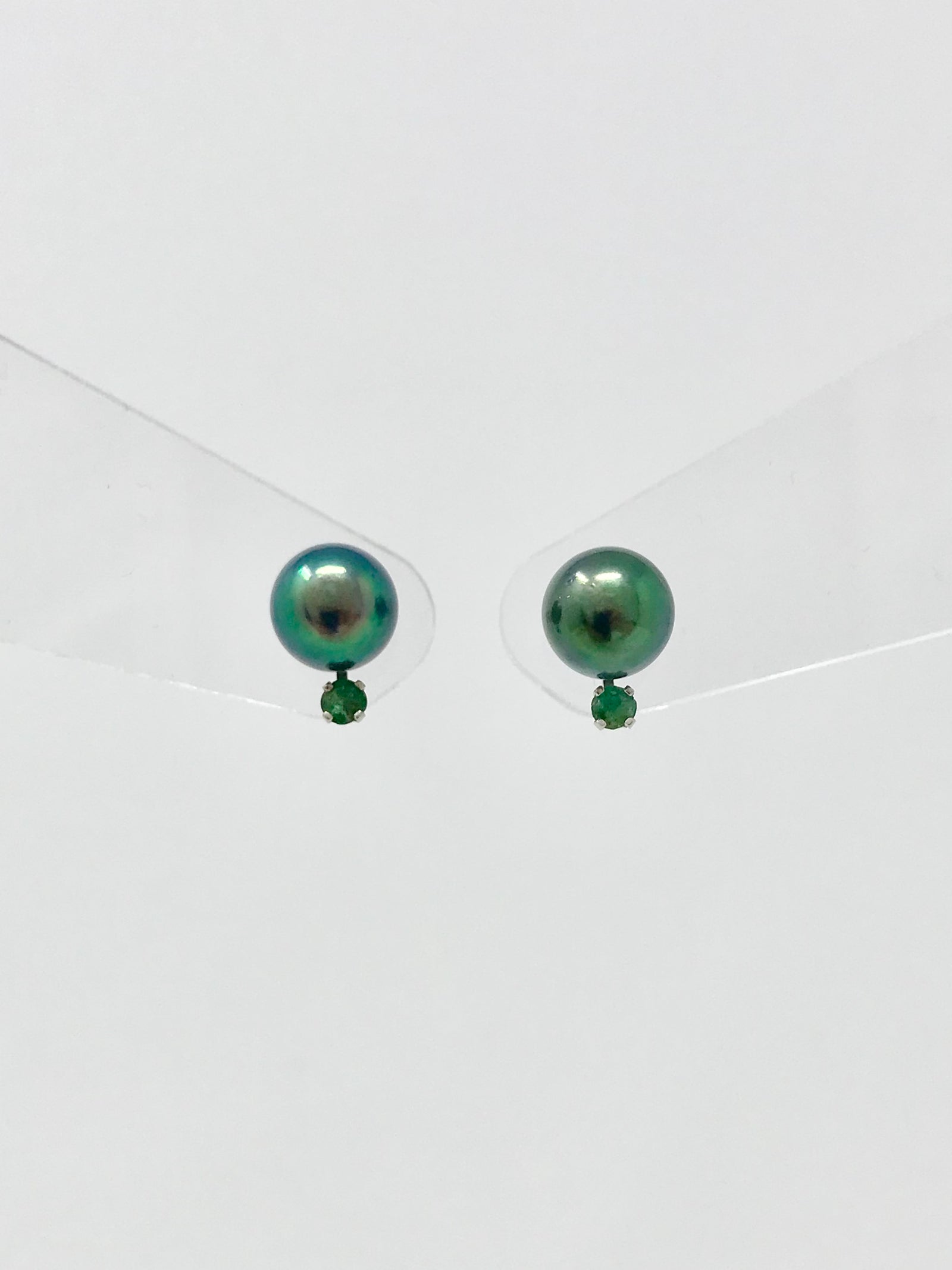 Cultured Black Pearl with Emerald Earrings Sold Out Sold Out