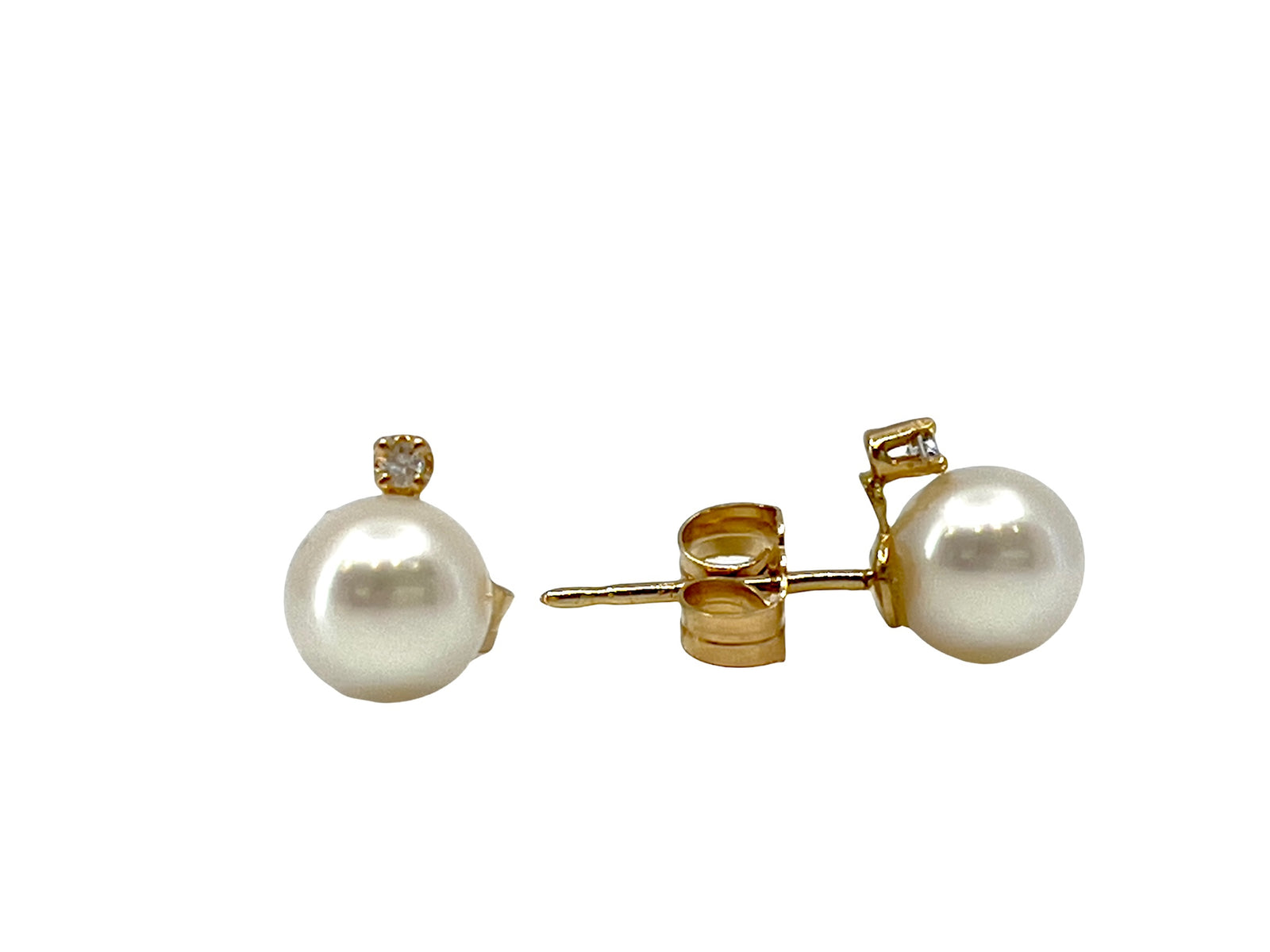 14K Yellow Gold 5.5-6mm Cultured Pearl and 0.02cttw Diamond Earrings with Butterfly Backs