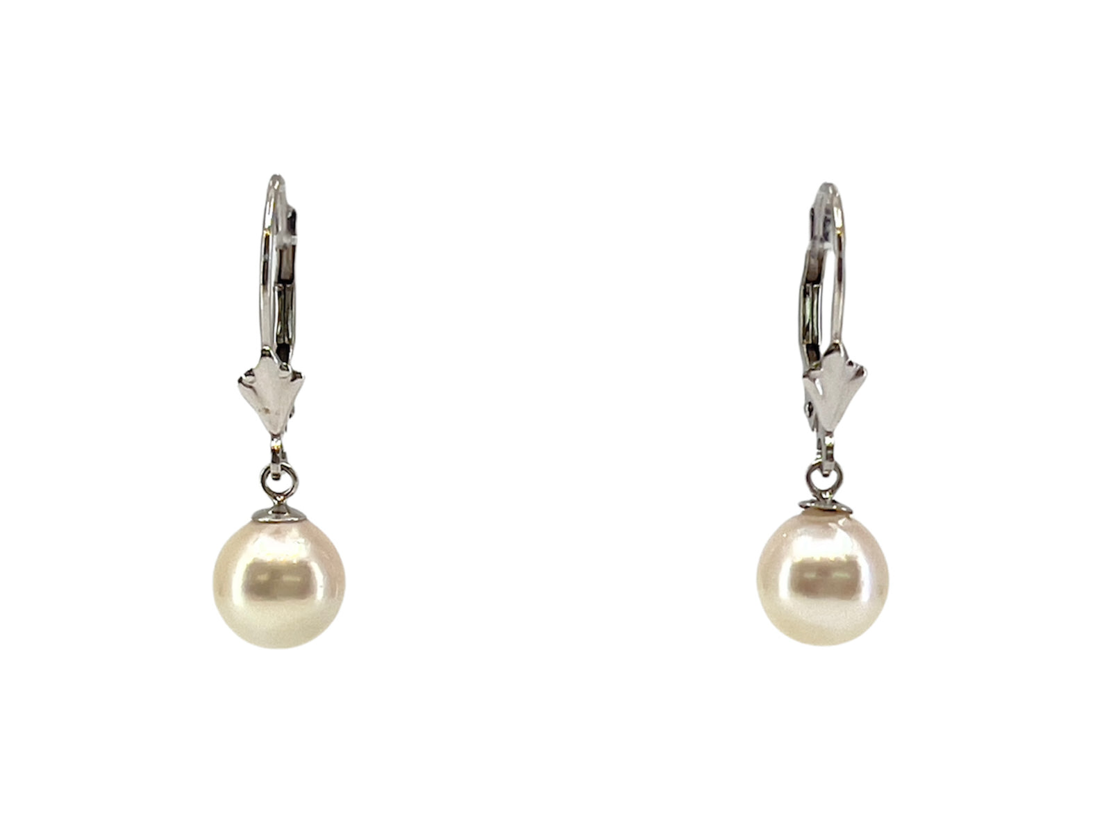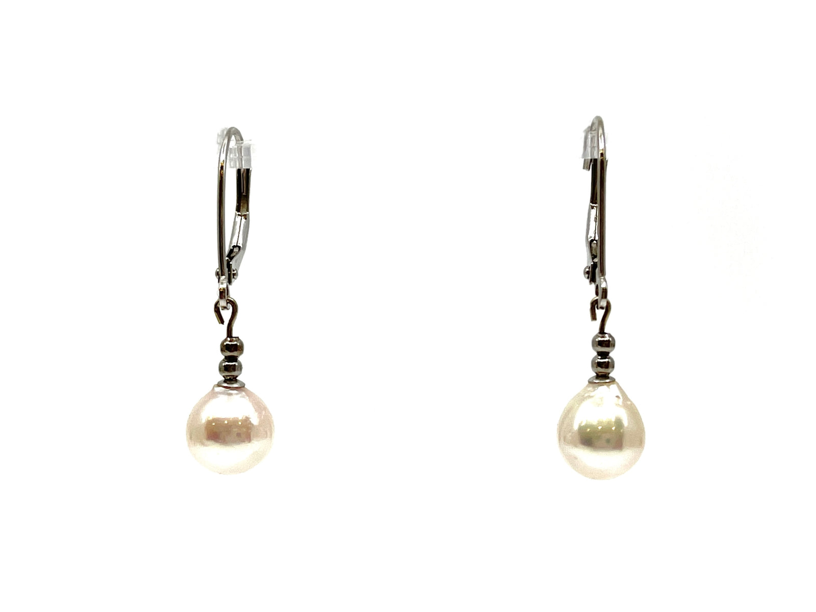 14K White Gold 7-7.5mm Cultured Pearl Earrings with Lever Backs