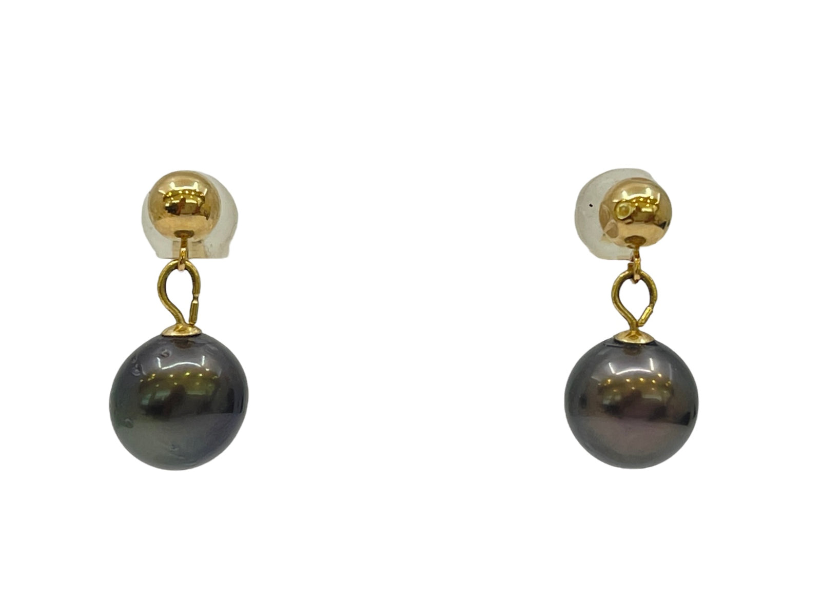 14K Yellow Gold 10mm Tahitian Pearl Stud Earrings with Butterfly Backs