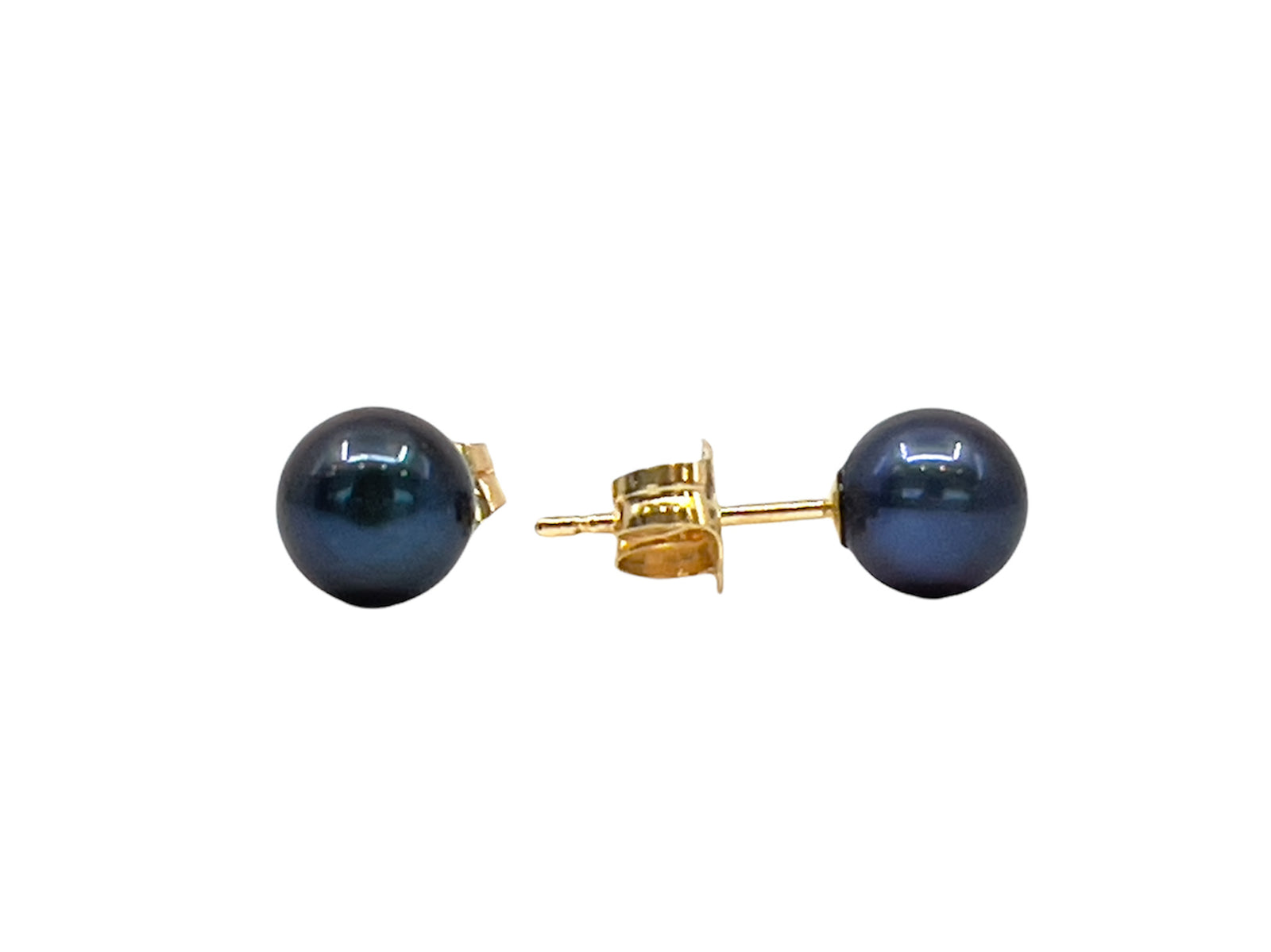 14K Yellow Gold 5.5 - 6mm Cultured Black Pearl Earrings with Butterfly Backs
