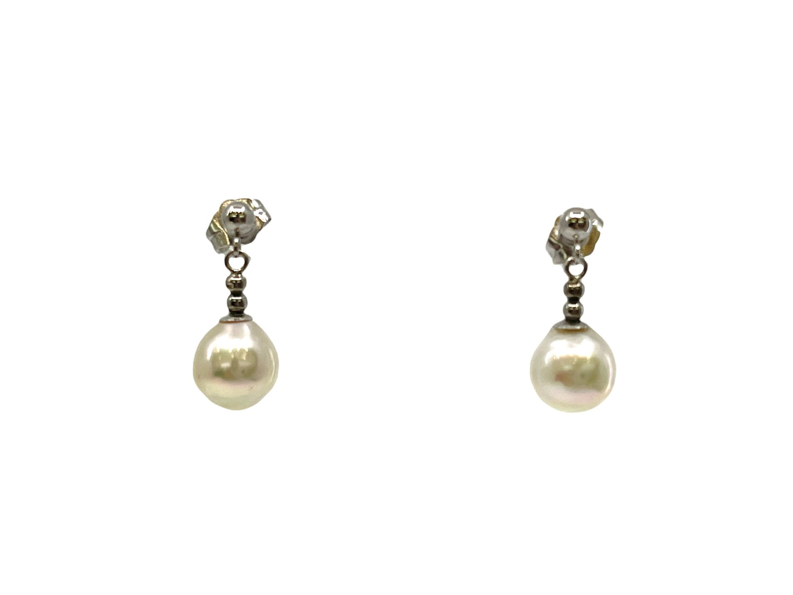 14K White Gold 8-8.5mm Cultured Pearl Earrings with Butterfly Backs