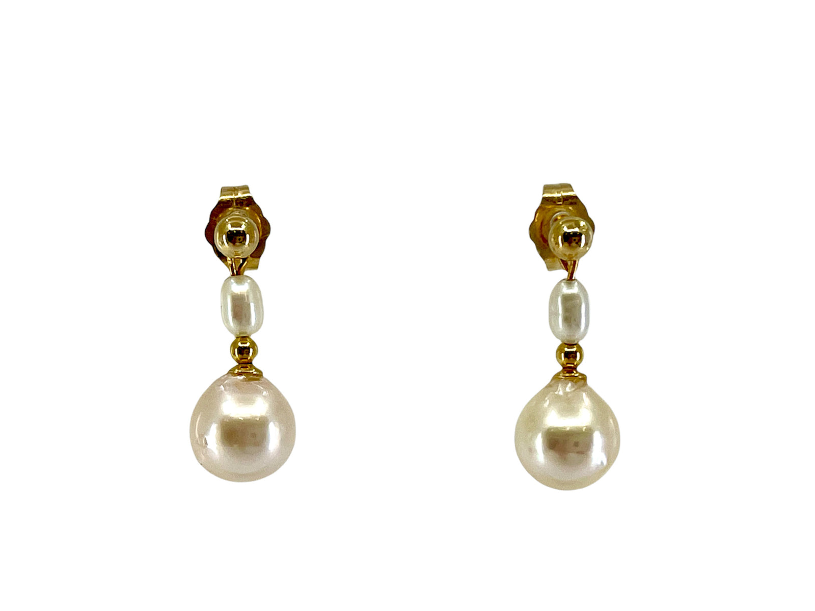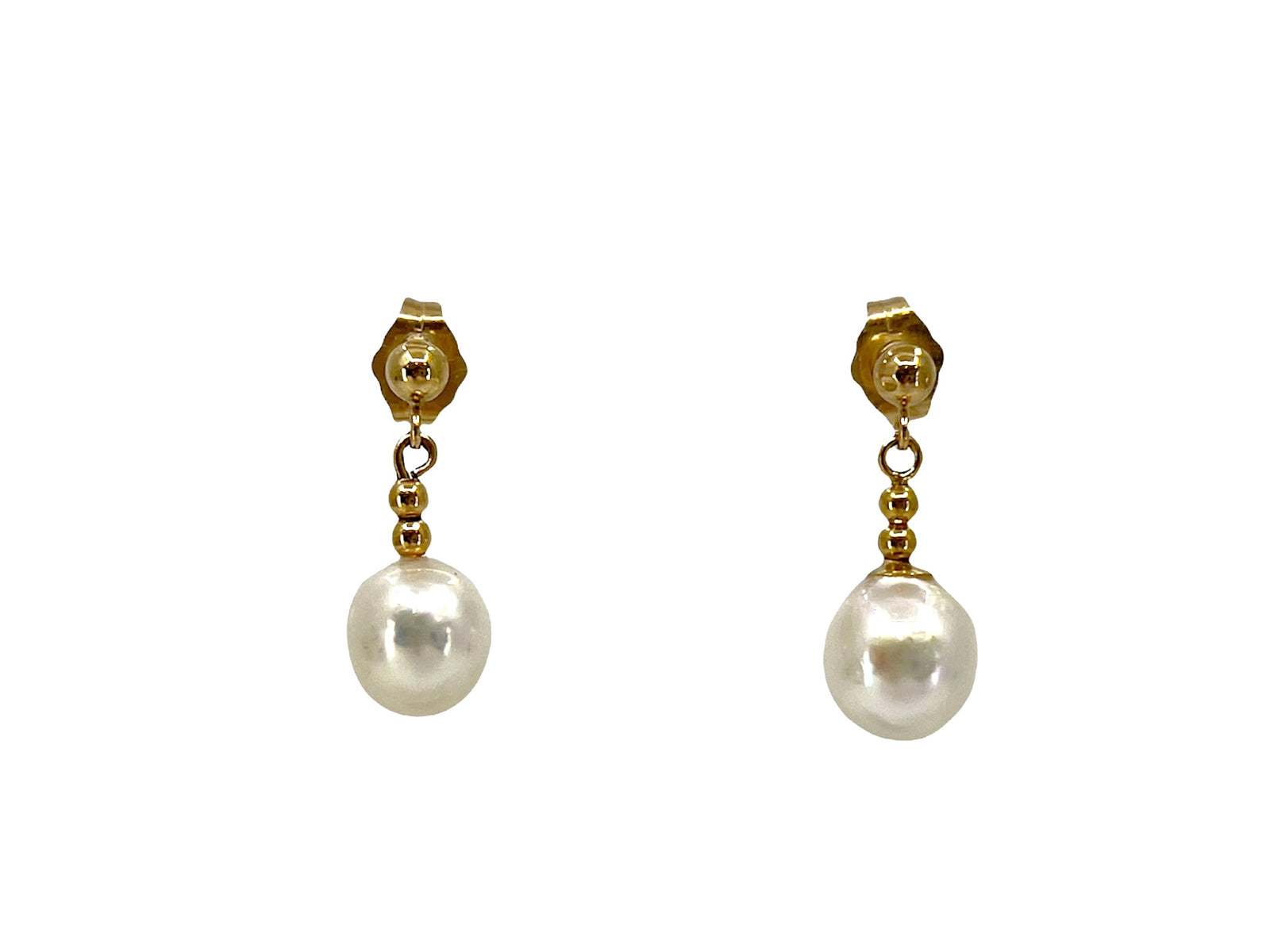14K Yellow Gold 8-8.5mm Cultured Pearl Earrings with Butterfly Backs