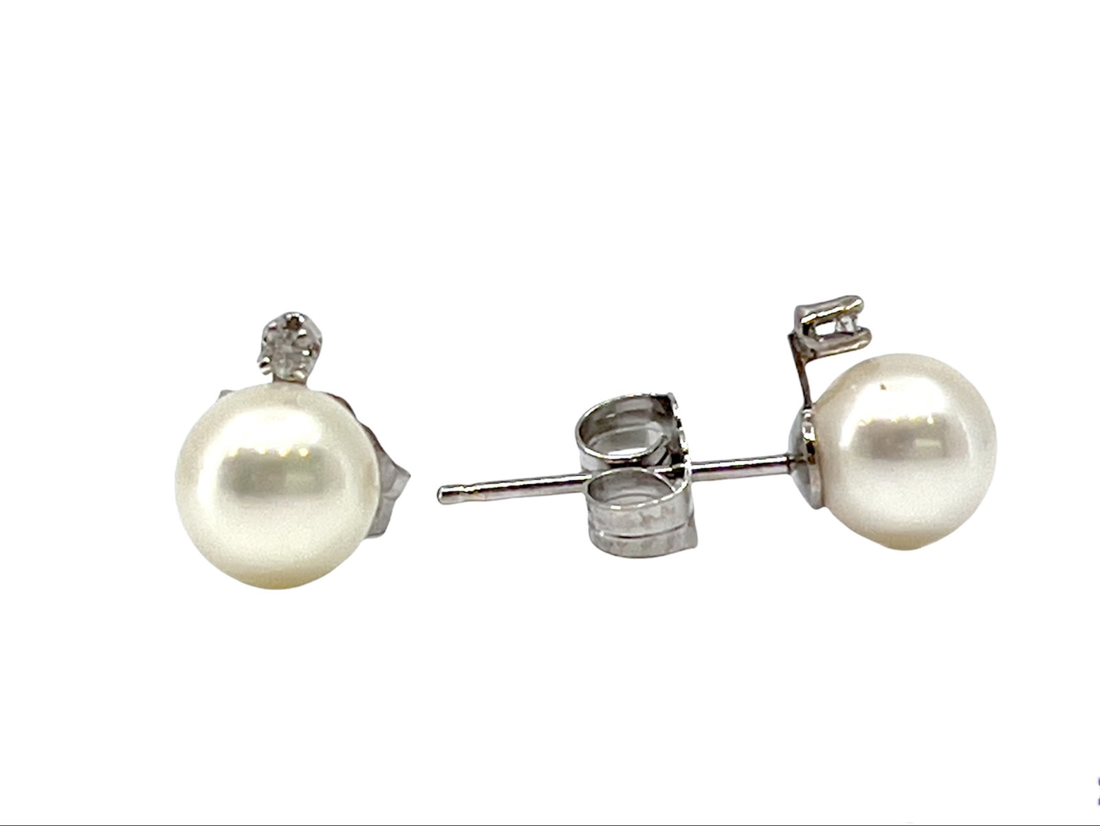 14K White Gold 8mm Cultured Pearl Stud Earrings with Butterfly Backs