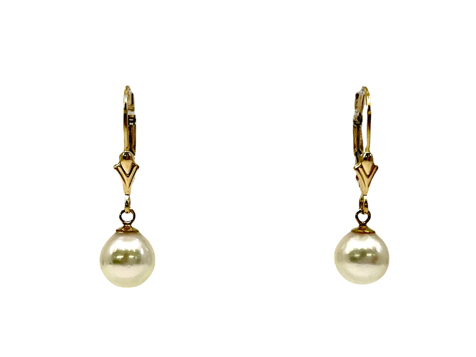 14K Yellow Gold Cultured Pearl Earrings with Lever Backs