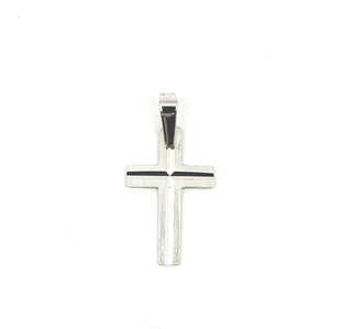 10K White Gold with Etched Center Cross Charm - 23mm x 12mm