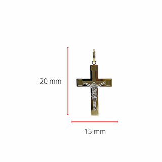 10K Two Tone White and Yellow Gold Cross - 18mm x 13mm