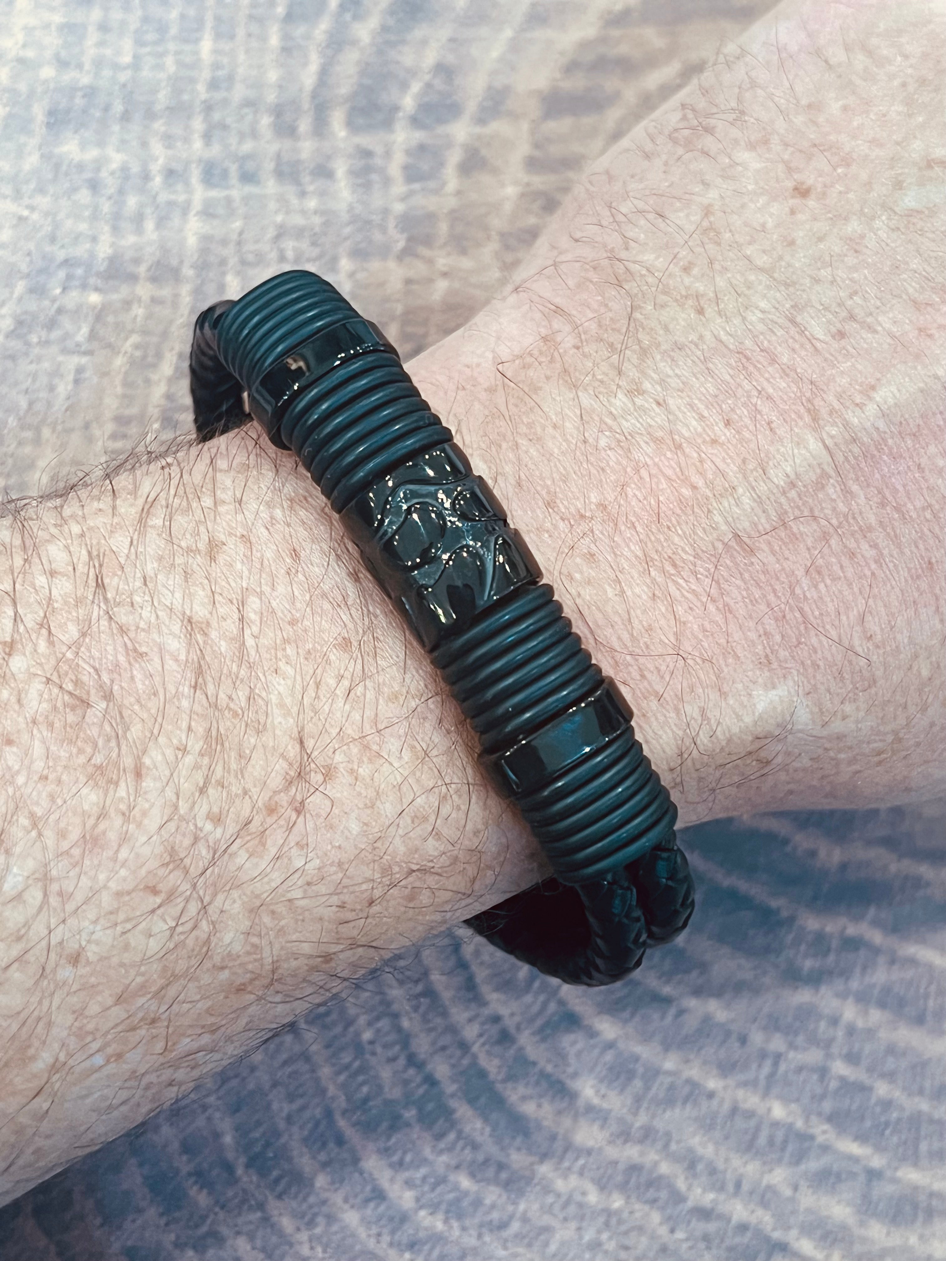 • Stainless Steel and Leather Bracelet