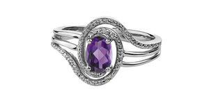 • 925 Sterling Silver Amethyst & Diamond Ring