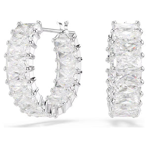 Swarovski Matrix hoop earrings, Baguette cut, White, Rhodium plated 5733397