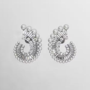 Infused with Swarovski savoir-faire, these striking pierced earrings are an ultra-modern way to elevate any outfit. Each rhodium plated piece features an open spiral of round and baguette-cut Swarovski Zirconia in a gradient of sizes. On the outer section, the design is completed by a gradient of Swarovski Crystal Pearls, which deliver a luxurious and captivating touch. A bright and beautiful pair of earrings that can be easily matched with other pieces from the same creative family.