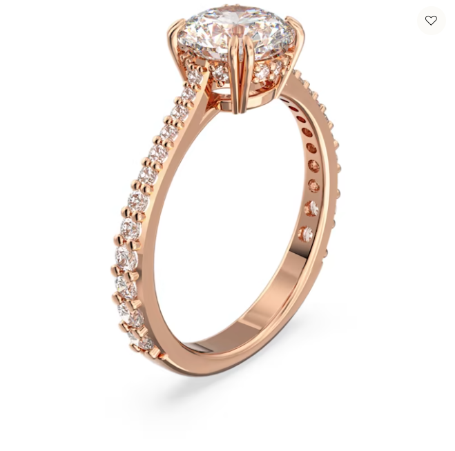 Proving there is power in simplicity, this Constella ring is a wardrobe essential. Expertly crafted, the scene-stealing princess-cut centre stone is enhanced with elegant pavé on the gallery and along the rose gold-tone plated band. Wear it solo and shine bright.