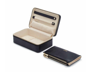 - Almacenamiento: 1 pestaña para aretes, 1 pestaña para anillos, 1 bolsillo con cremallera, bolsa doble con cremallera multiusos con 4 compartimentos de almacenamiento, 3 ganchos para collar a presión con bolsillo.