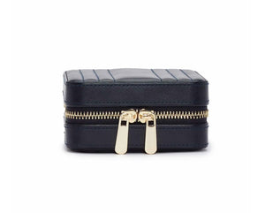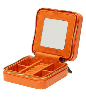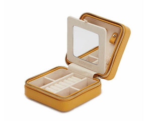 - Almacenamiento: 7 rollos de anillos, 4 compartimentos abiertos, 3 ganchos a presión para collares con bolsillo, 1 barra para anillos, una barra para aretes, espejo