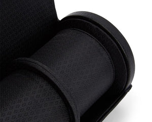 - Material: cuero vegano color guijarro, forro de satén de diamantes, paneles finales de macassar de ébano