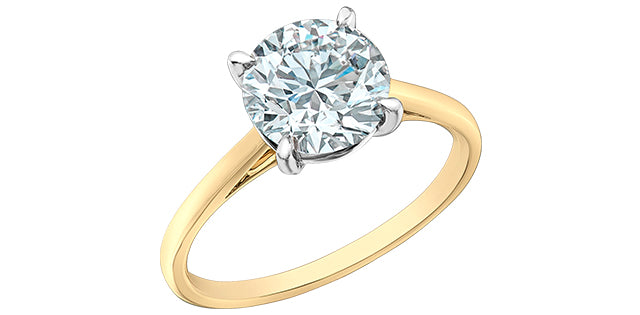 Anillo de compromiso de diamantes redondos de talla brillante cultivados en laboratorio de 2,00 quilates de oro amarillo de 14 quilates