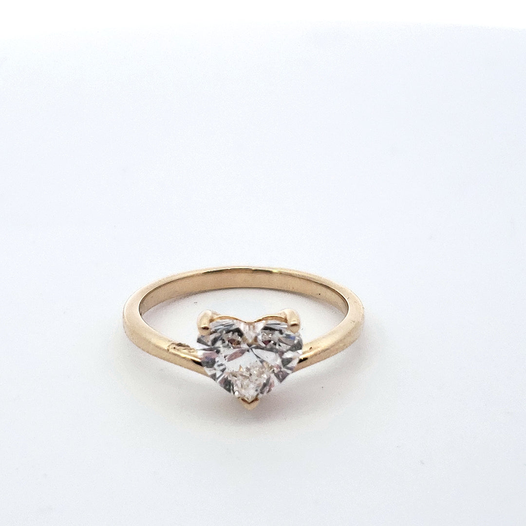 Solitario de diamante en forma de corazón cultivado en laboratorio de oro amarillo de 14 quilates de 1,50 quilates