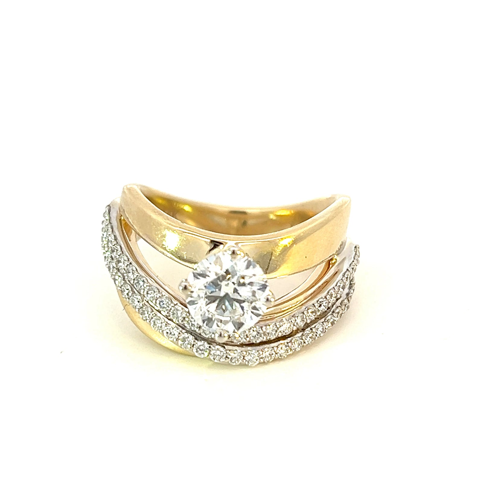 Anillo de compromiso de diamantes redondos de talla brillante cultivados en laboratorio de 1,50 quilates de oro amarillo de 14 quilates