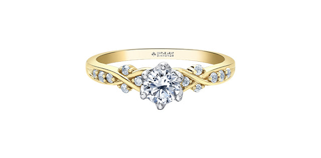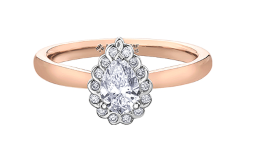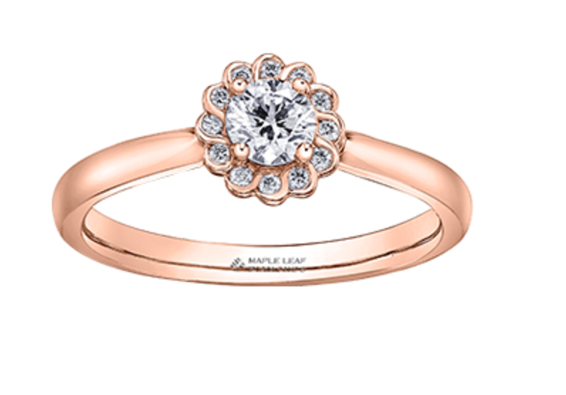 Anillo de compromiso de diamantes canadienses de talla brillante redonda de 0,33 quilates en oro blanco y rosa de 18 quilates