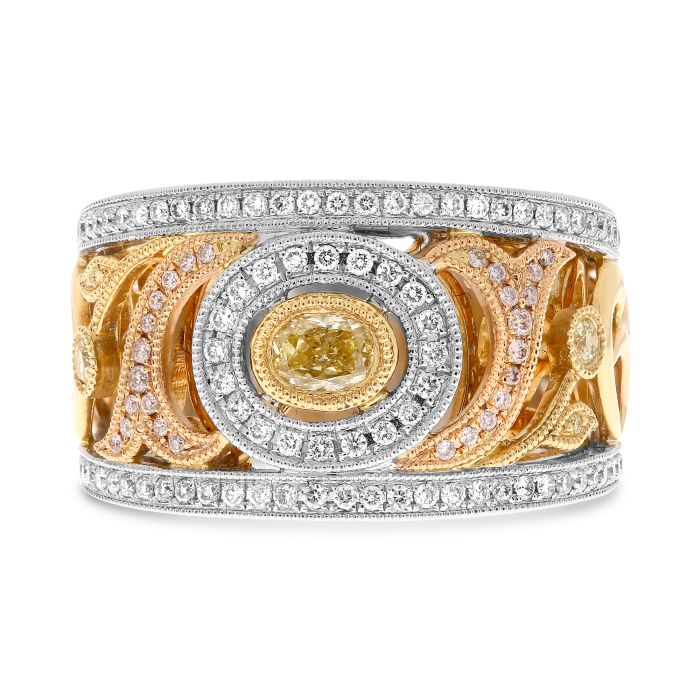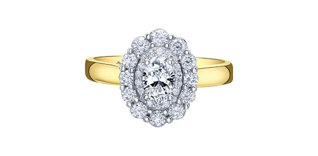 Anillo de compromiso de oro blanco y amarillo de 18 quilates de 1,10 quilates con diamantes amarillos de talla ovalada