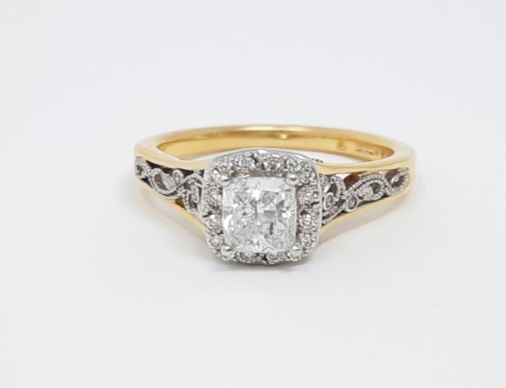 Anillo de compromiso de diamantes canadienses de talla cojín de 0,70 quilates en oro blanco y rosa de 18 quilates, tamaño 6,5