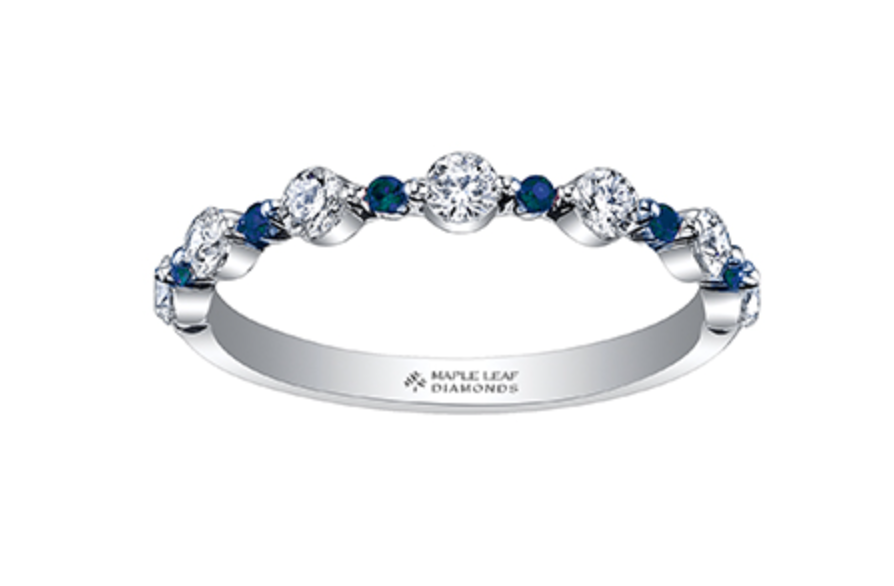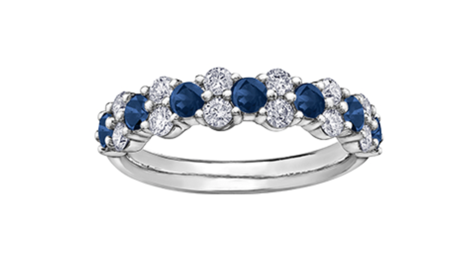 Anillo de oro blanco de 18 k, paladio (hipoalergénico), zafiro azul y diamante canadiense de 0,42 quilates, tamaño 6,5