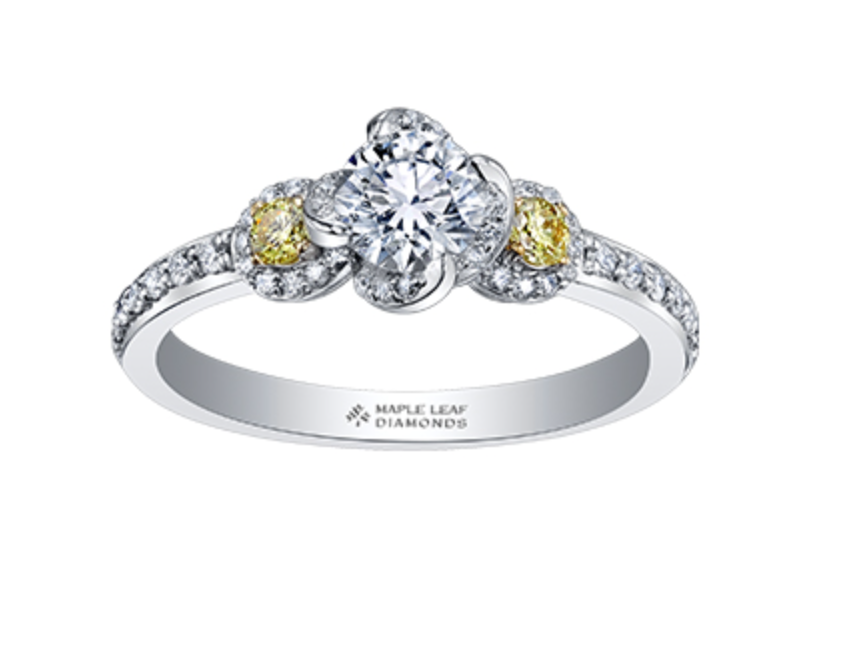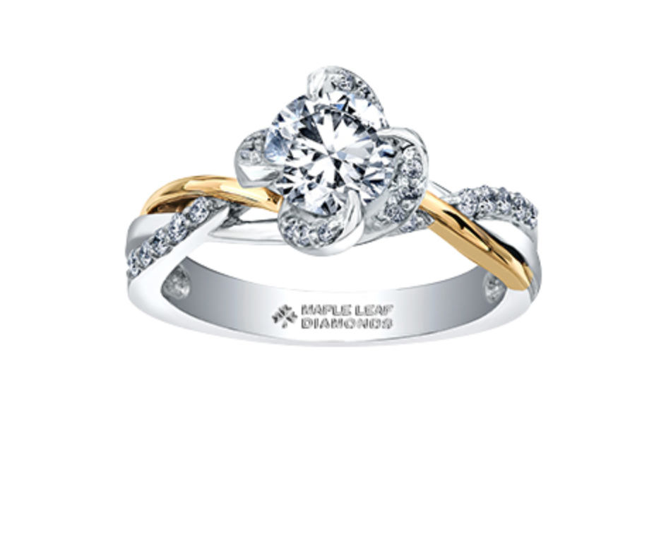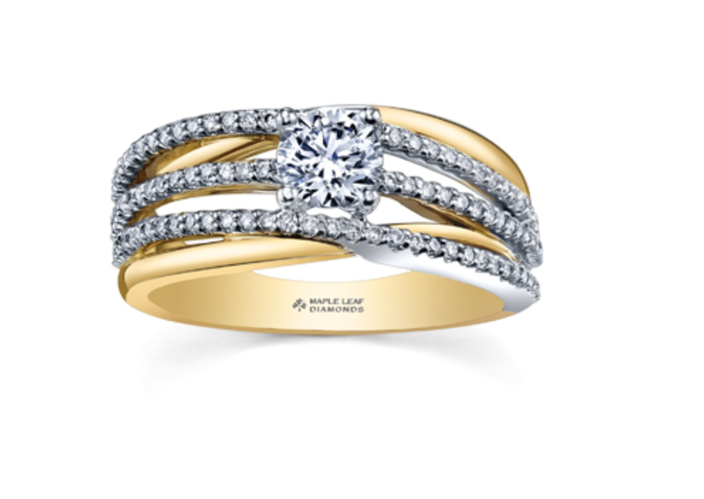 Anillo de compromiso de diamantes canadienses de 0,80 quilates en oro blanco y amarillo de 18 quilates con aleación de paladio (hipoalergénico)