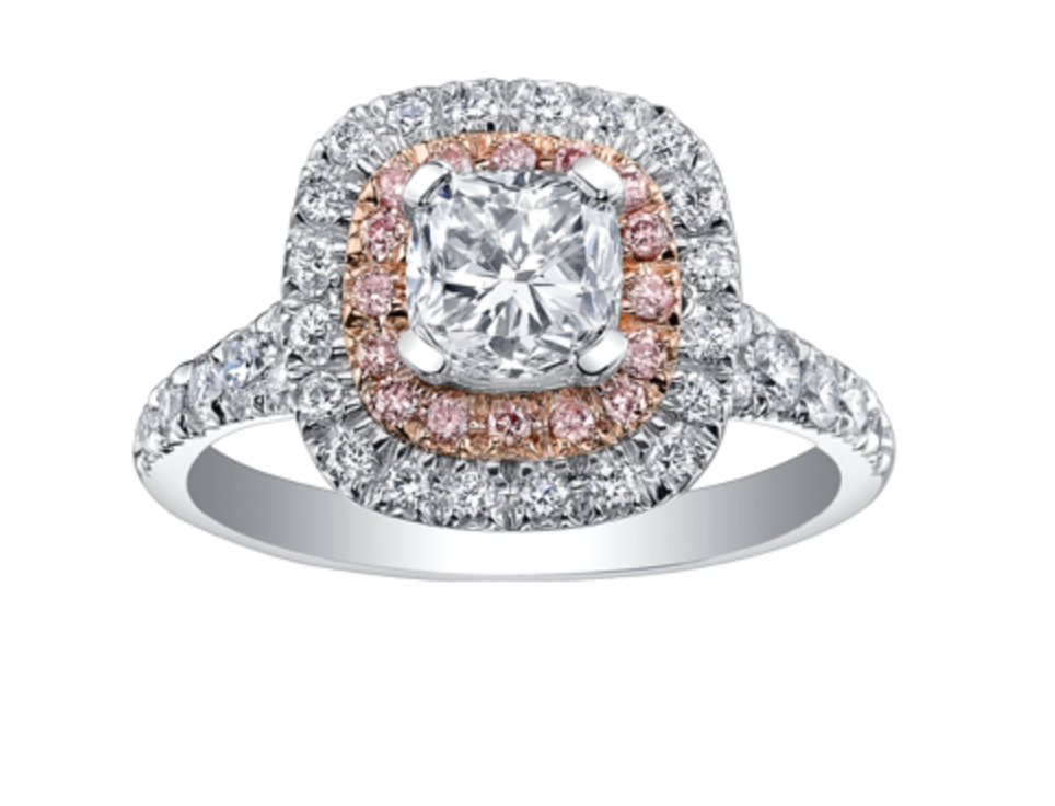 Anillo de compromiso de diamantes canadienses de oro blanco y rosa de 18 quilates con aleación de paladio (hipoalergénico) de 0,65 a 2,30 quilatesde