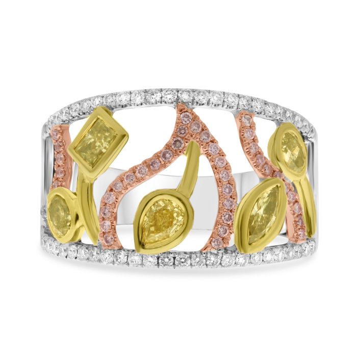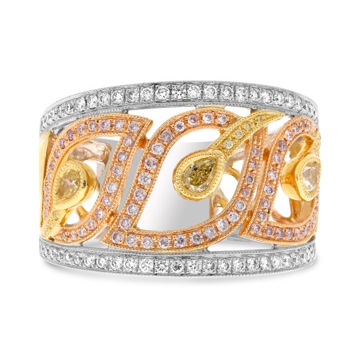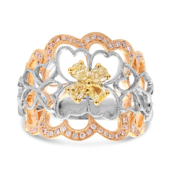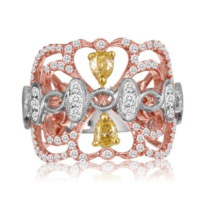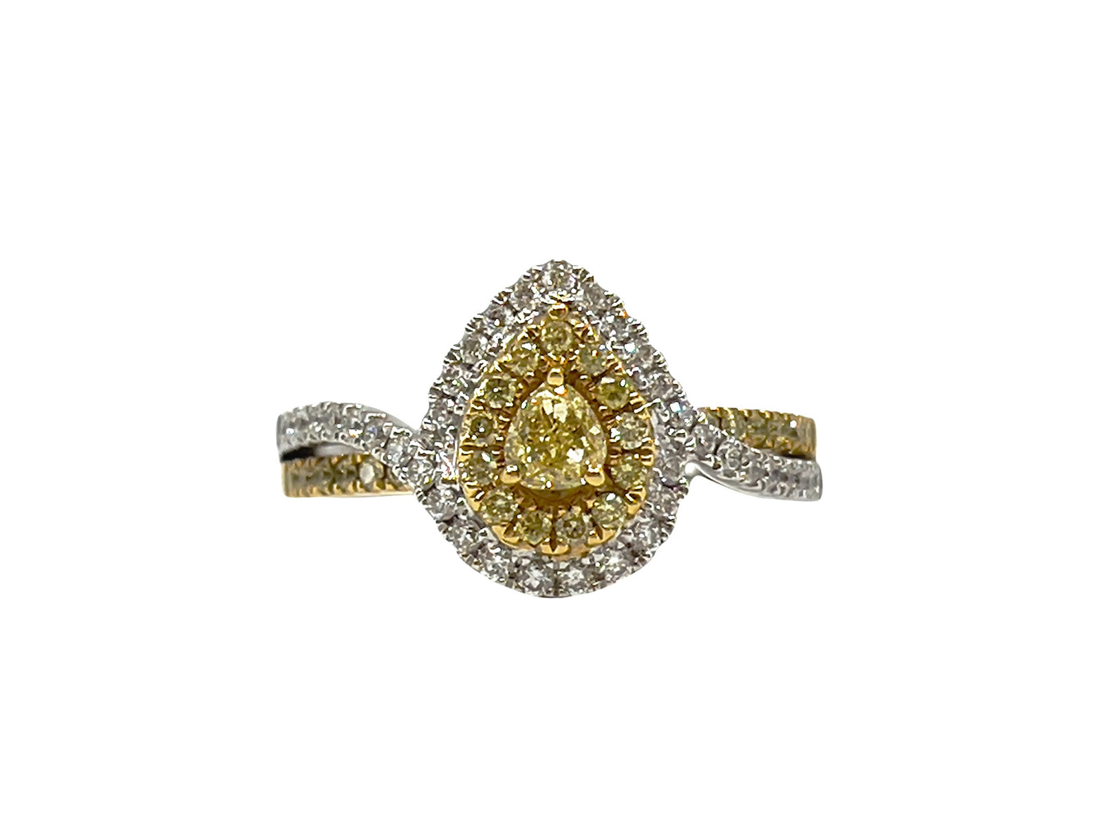 Anillo de compromiso de oro blanco y amarillo de 18 quilates con diamante amarillo elegante de 0,68 quilates con talla de pera