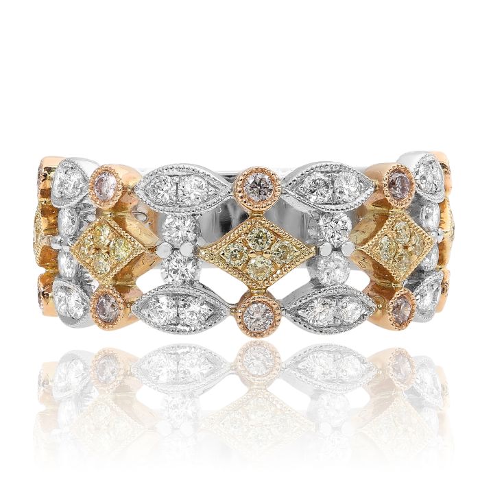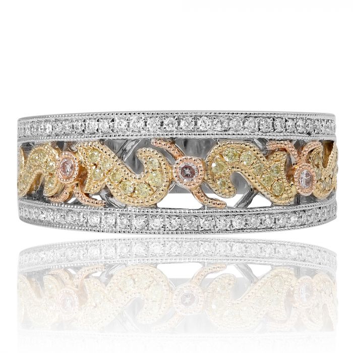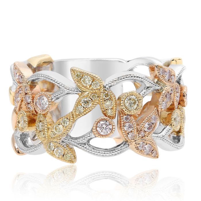 Anillo de compromiso de diamantes canadienses de talla brillante redonda de 0,84 quilates en oro blanco y rosa de 18 quilates