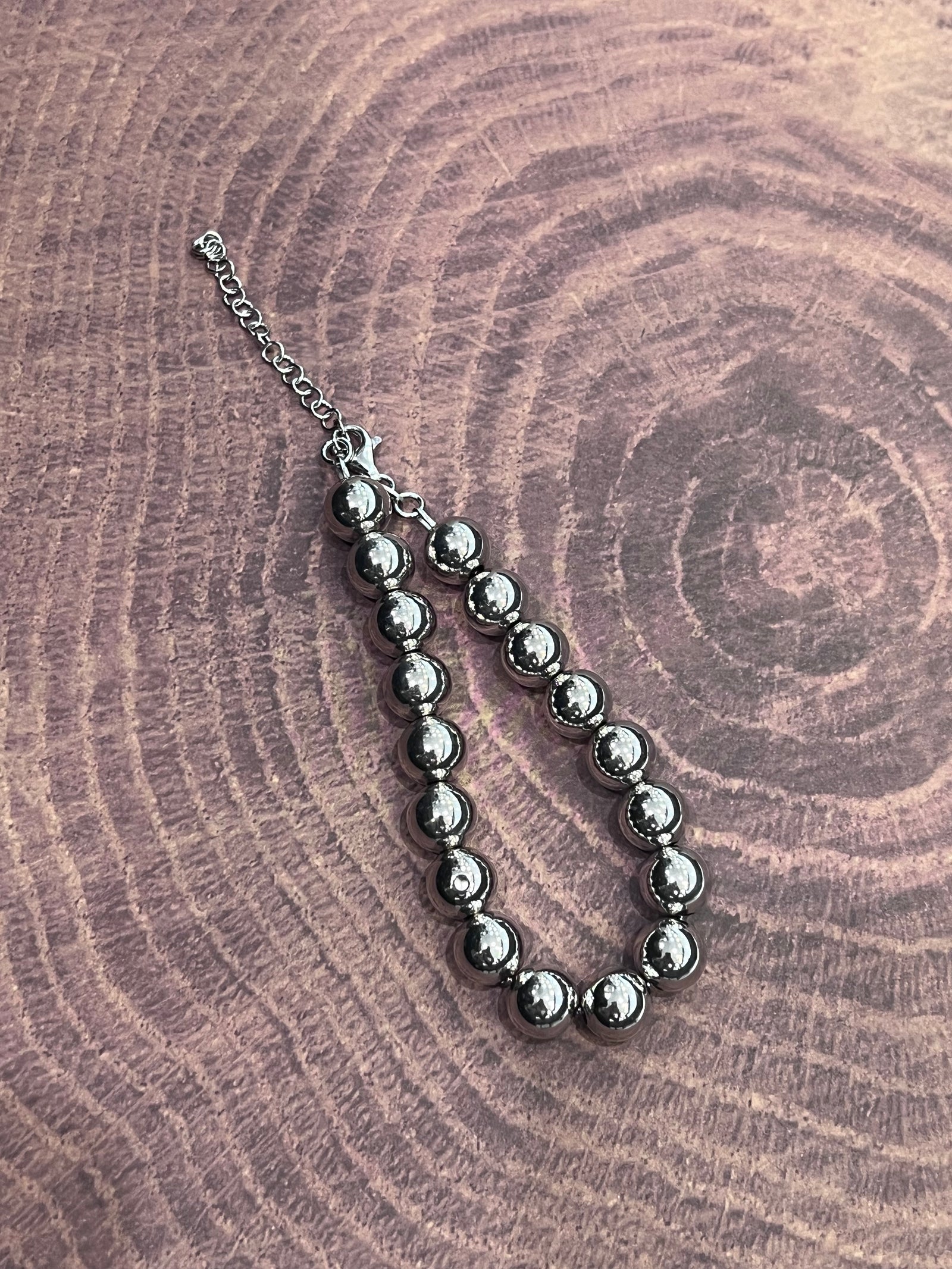 925 Sterling Silver 10.0mm Ball Link Bracelet - 8-10 Inches