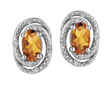 Pendientes de plata de ley con citrino auténtico de 0,50 quilates y halo de diamantes de 0,036 quilates