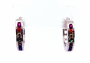 Pendientes de plata 925 Huggies con circonitas cúbicas de colores del arcoíris