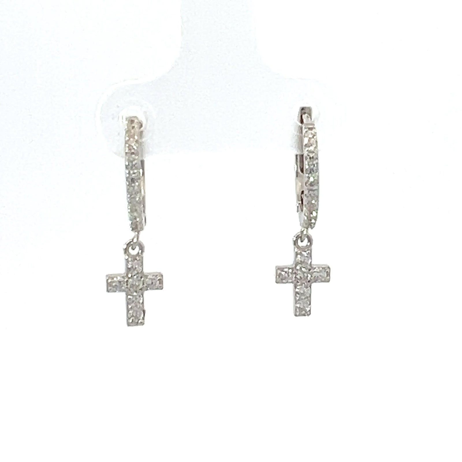 Pendientes Huggies de Plata 925 con Circonitas y Cruz Colgante con Circonitas