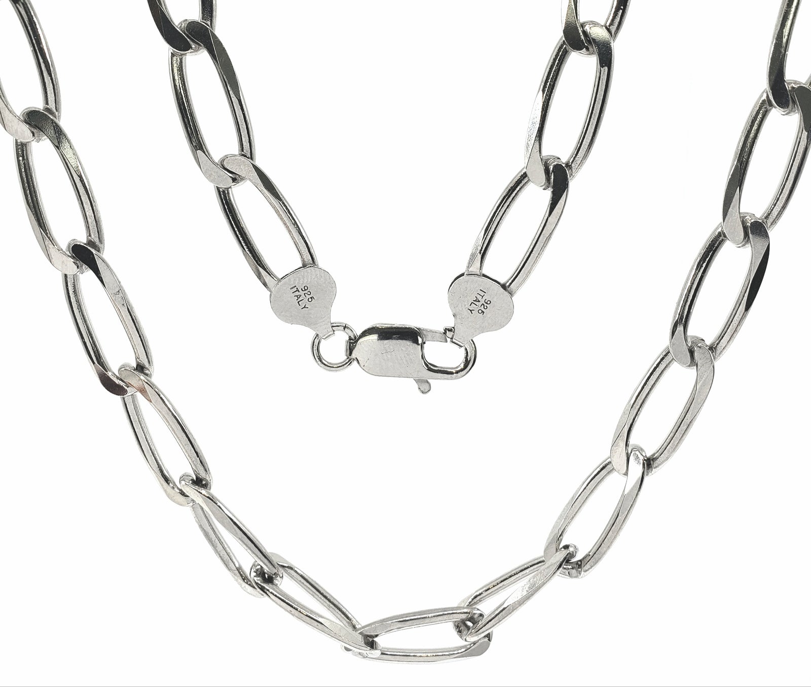 Cadena de clip de papel con corte de diamante de seis caras chapada en platino de 7,75 mm de plata de ley 925 - 22 pulgadas
