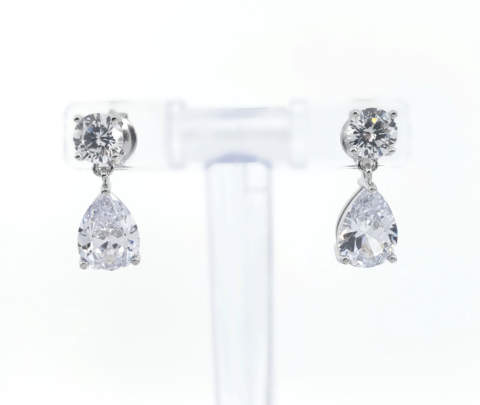 Pendientes colgantes de circonita cúbica en forma de lágrima de plata de ley 925, redondos de 5,5 mm y 7 mm x 10,5 mm, 17,5 mm x 7 mm