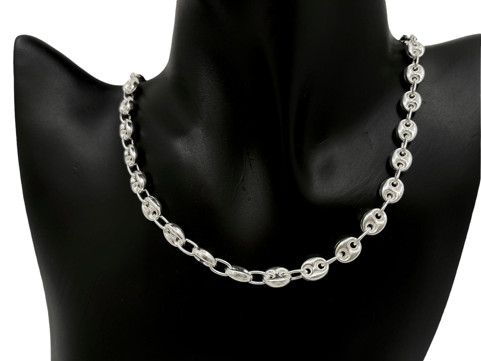 Cadena de clip de papel con corte de diamante de seis lados chapada en platino de 8,30 mm de plata de ley 925 - 24 pulgadas