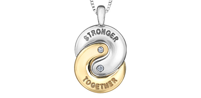 Collar de diamantes de 0,02 quilates "Stronger Together" de plata de ley y oro amarillo de 10 quilates, 18"