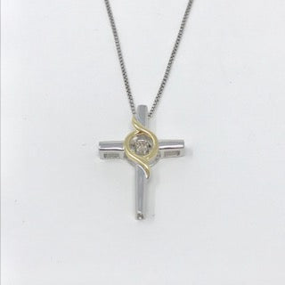Colgante de cruz de diamantes de plata de ley de 0,075 quilates, 18"