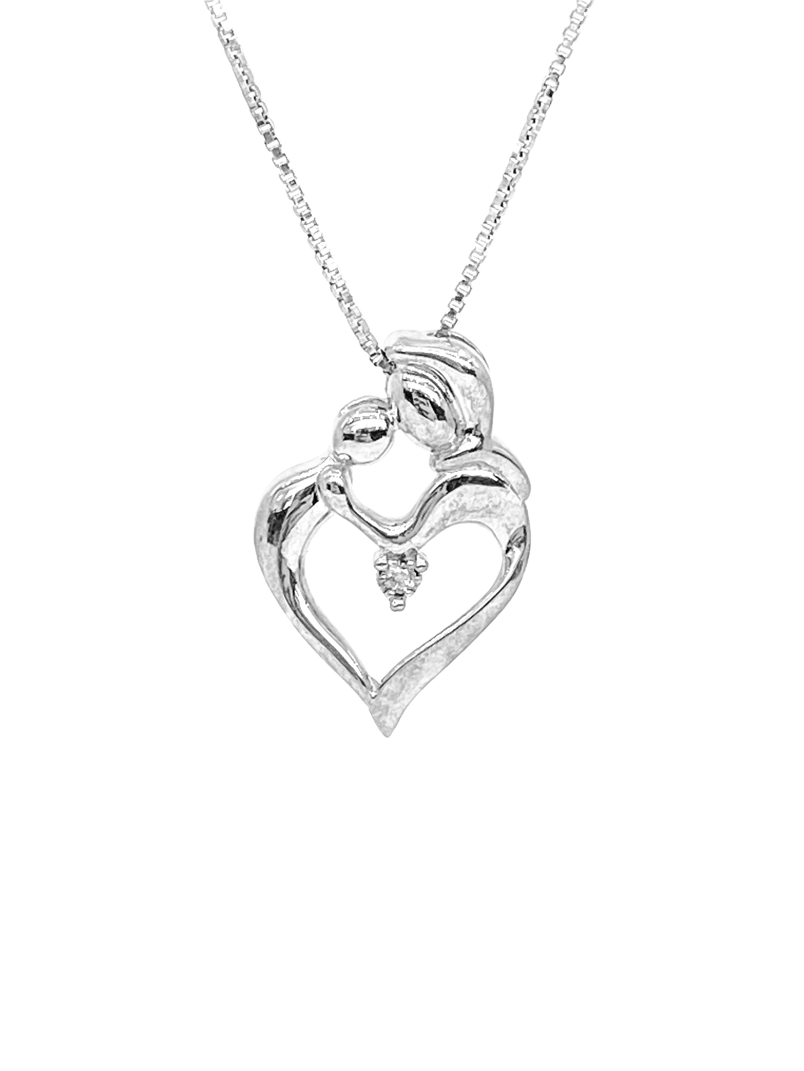 Sterling Silver 0.005cttw Diamond Heart Necklace