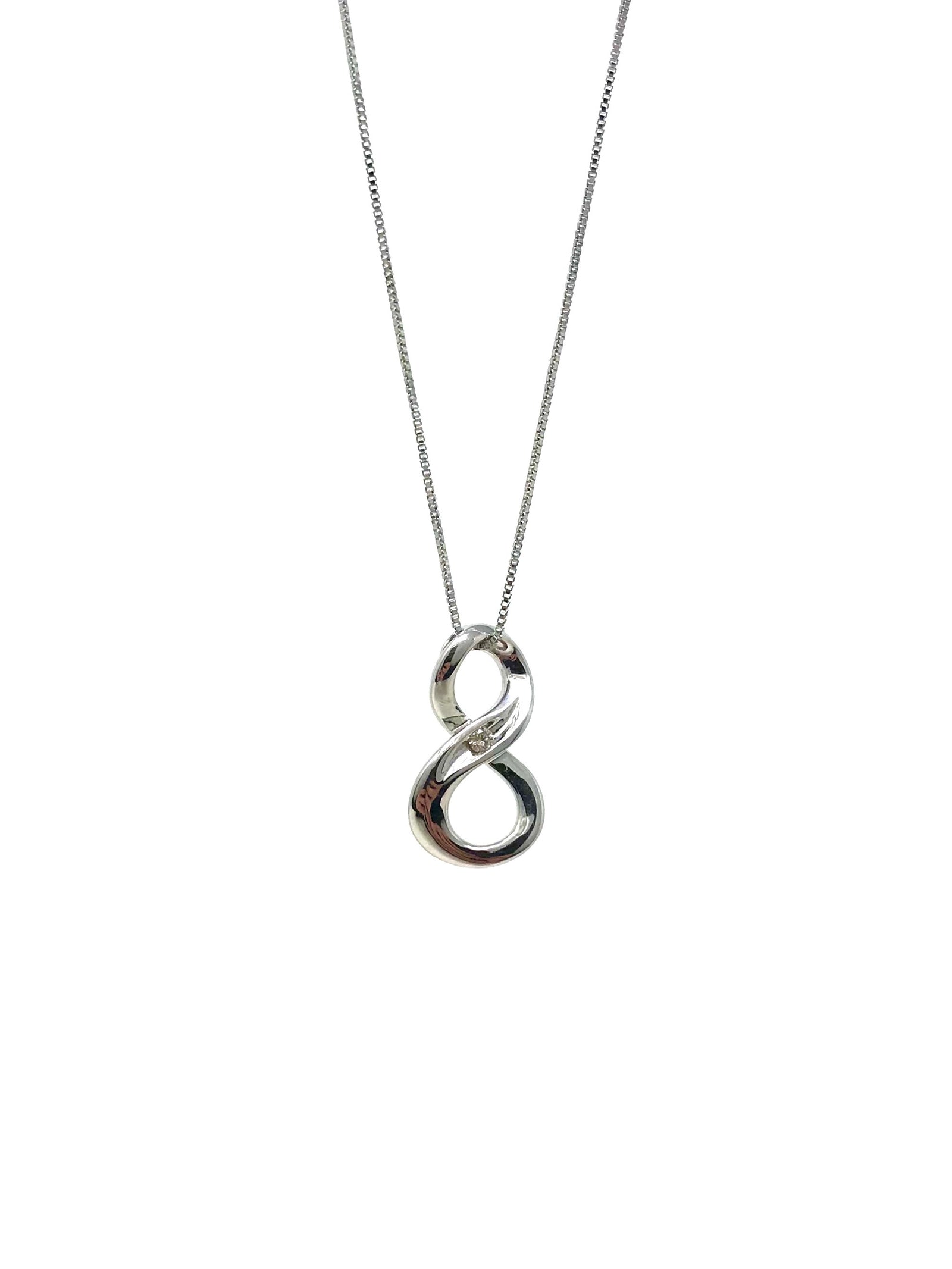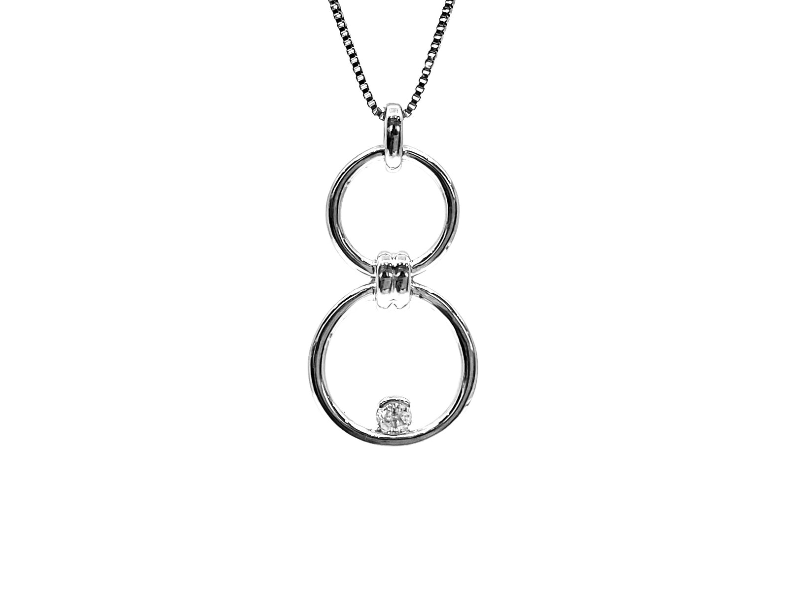 Collar con doble infinito/círculo de diamantes de 0,11 quilates en plata de ley, 18"