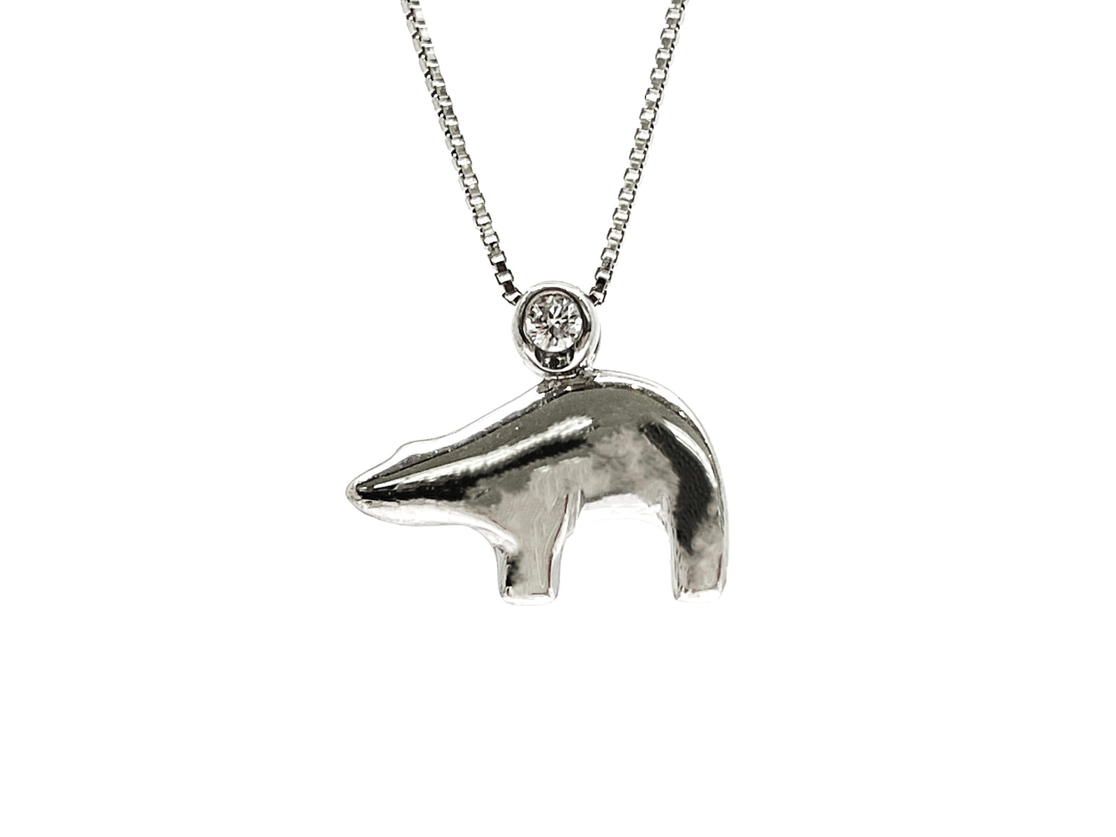 Colgante de oso polar con diamantes canadienses de 0,057 quilates de plata de ley, 18"