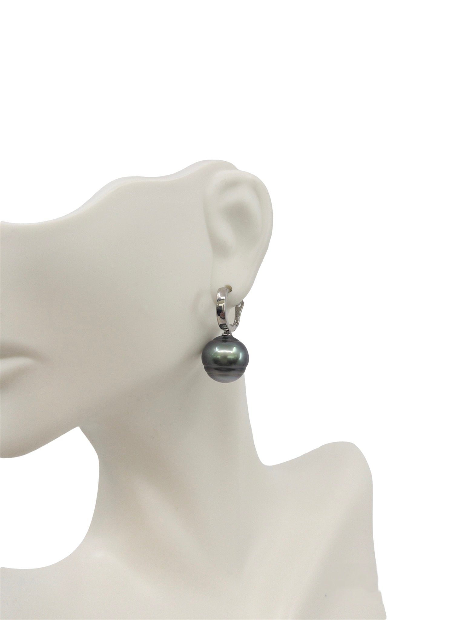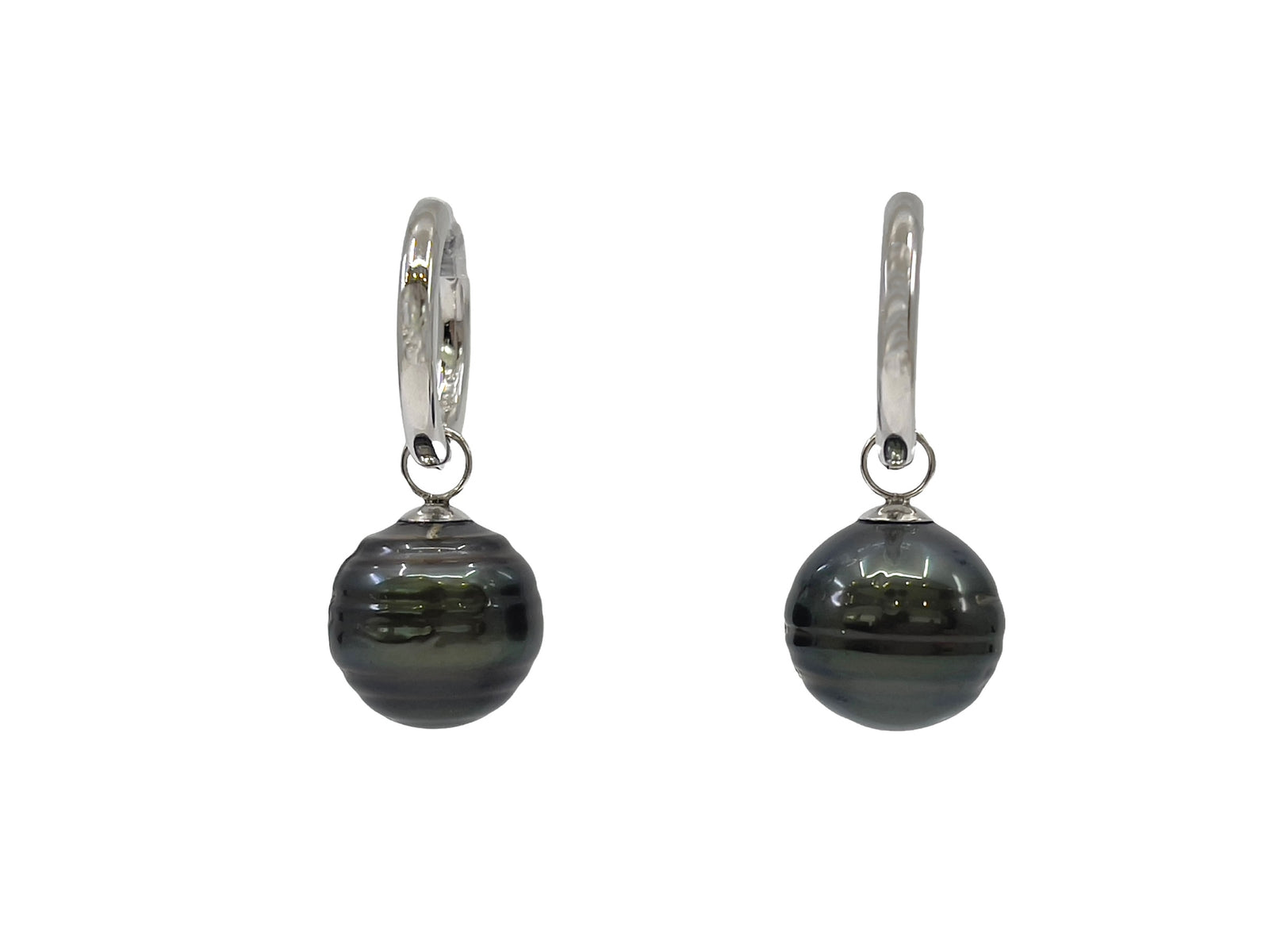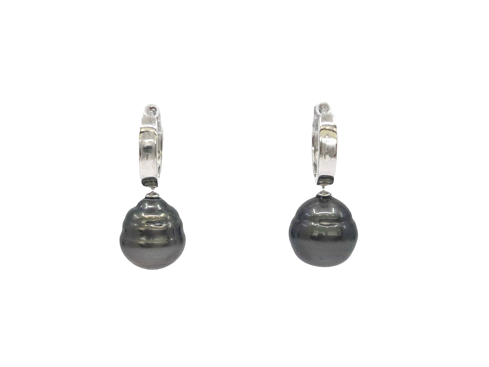 Pendientes colgantes de perlas de Tahití de plata de ley con cierre de aro Huggie