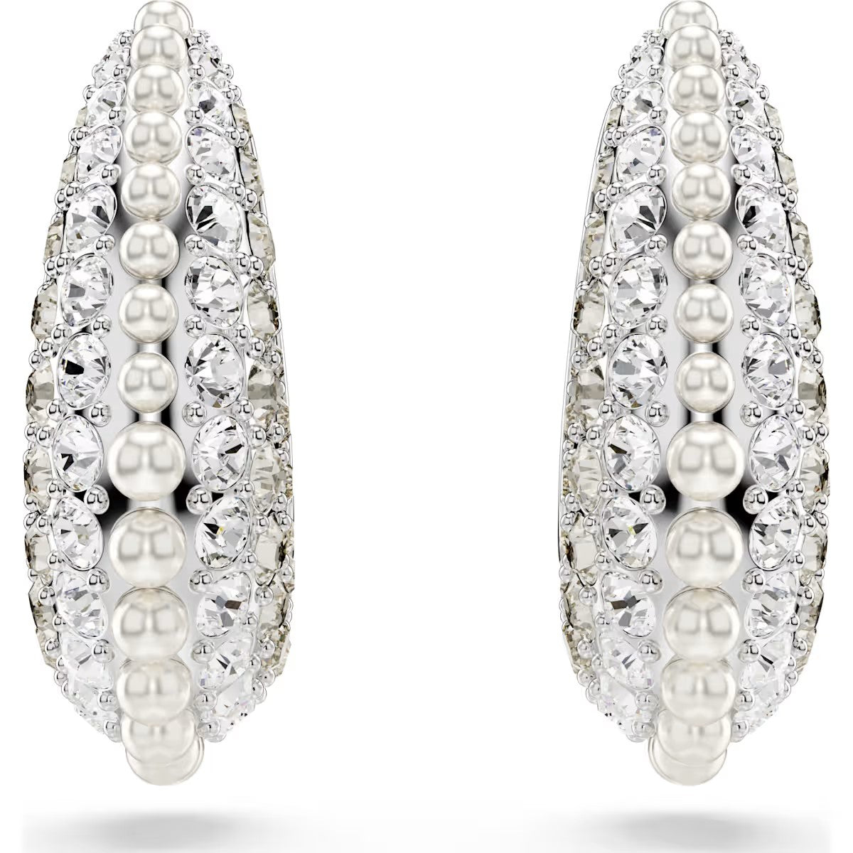 Swarovski - Vittore/Matrix hoop earrings, Round cut, White, Rhodium plated 5562126/5633866 (SS)