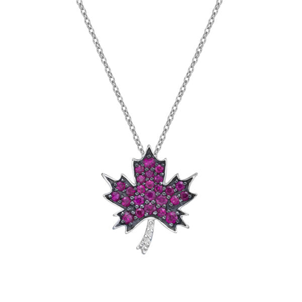 Collar de oro blanco de 10 quilates con rubí de 0,45 quilates y diamantes de 0,015 quilates con cadena tipo cable (cierre de resorte) - Ajustable de 43 a 45 cm
