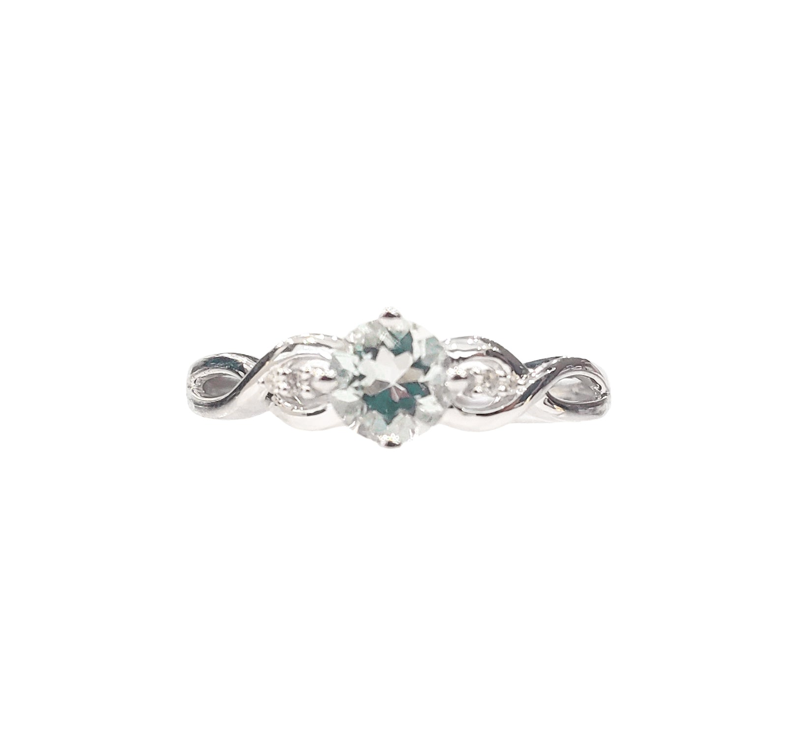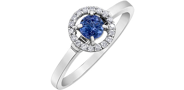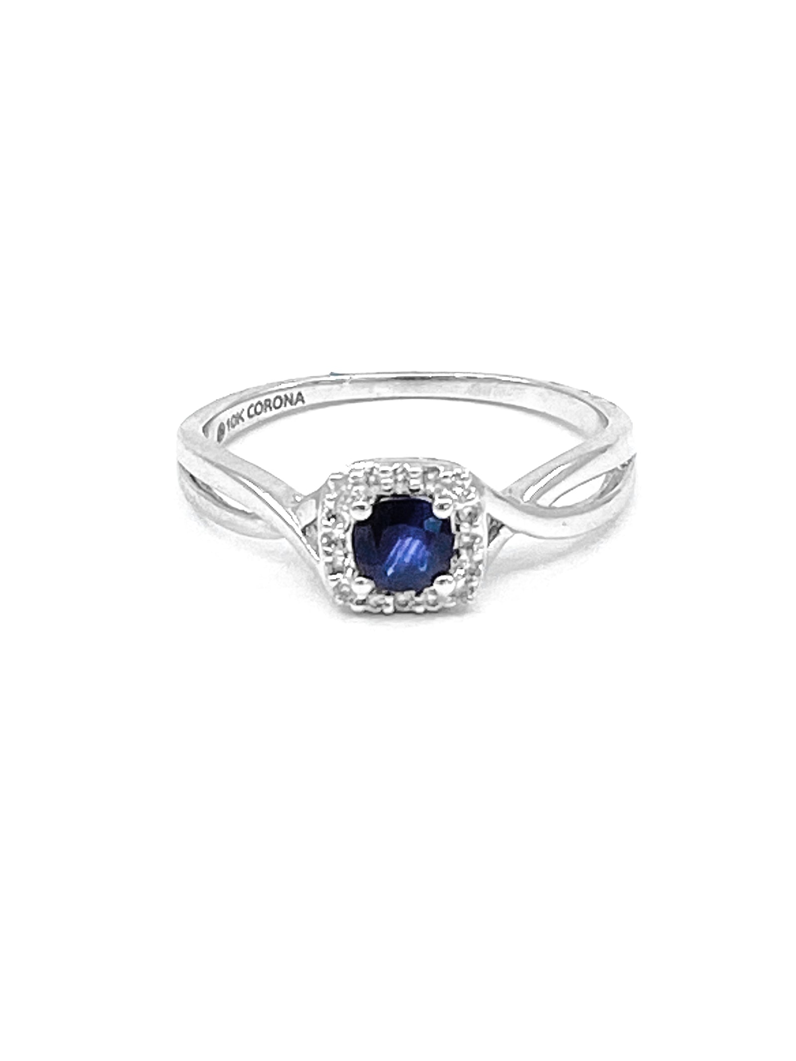 Anillo de oro blanco de 10 quilates con zafiro de 0,40 quilates y diamante de talla princesa de 0,28 quilates - Talla 7