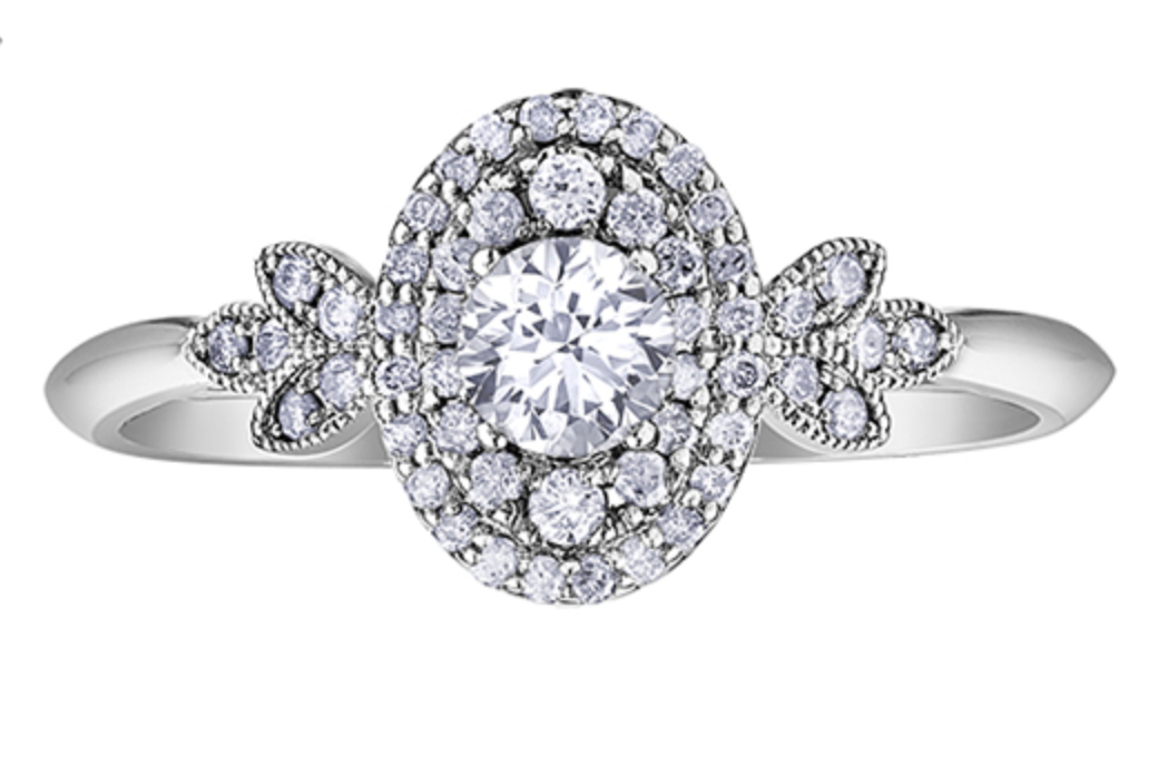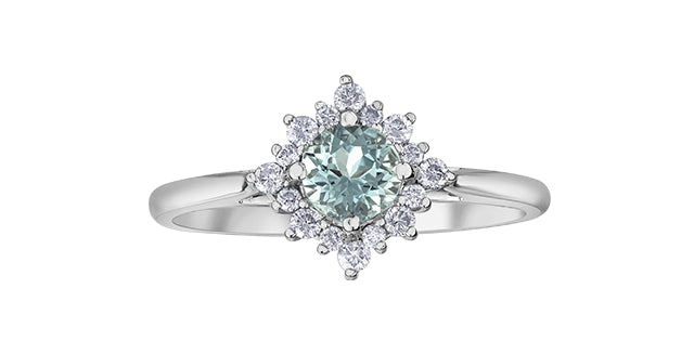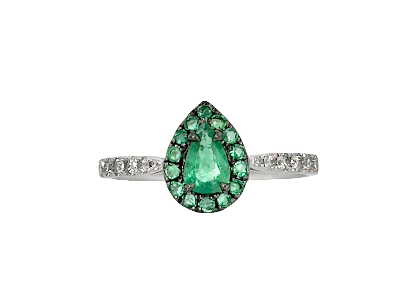 Anillo de oro blanco de 10 quilates con esmeralda de talla pera de 0,45 quilates y halo de diamantes de 0,18 quilates - Tamaño 6,5