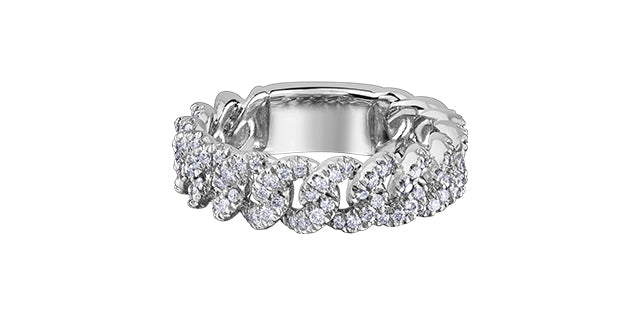 Anillo/banda de eslabones cubanos de Miami con diamantes de 0,50 quilates en oro blanco de 10 quilates, talla 6,5