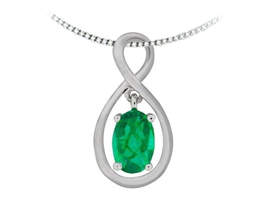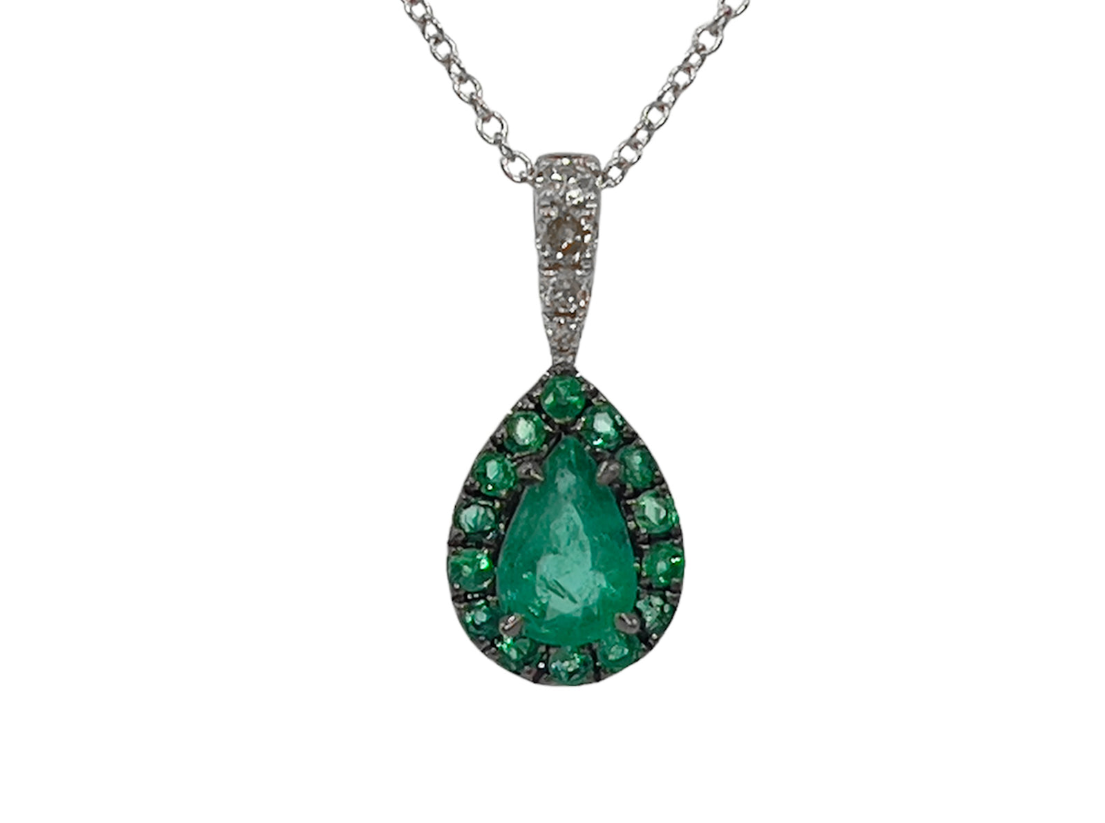 Colgante de oro blanco de 10 quilates con esmeralda de talla pera de 0,47 quilates y diamante de 0,055 quilates, 18"