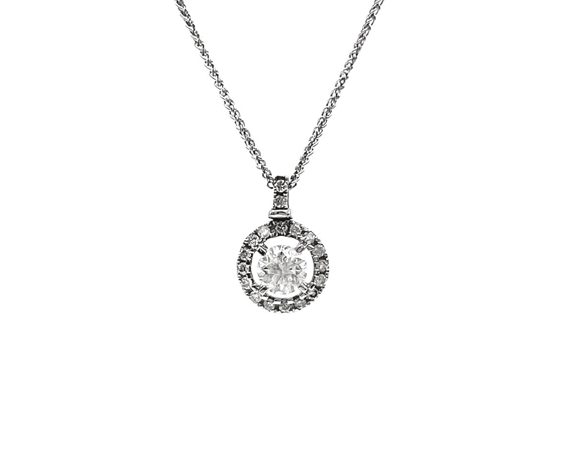 Colgante de oro blanco de 10 quilates con peridoto de 0,40 quilates y diamante de 0,08 quilates, cadena tipo caja de 18"